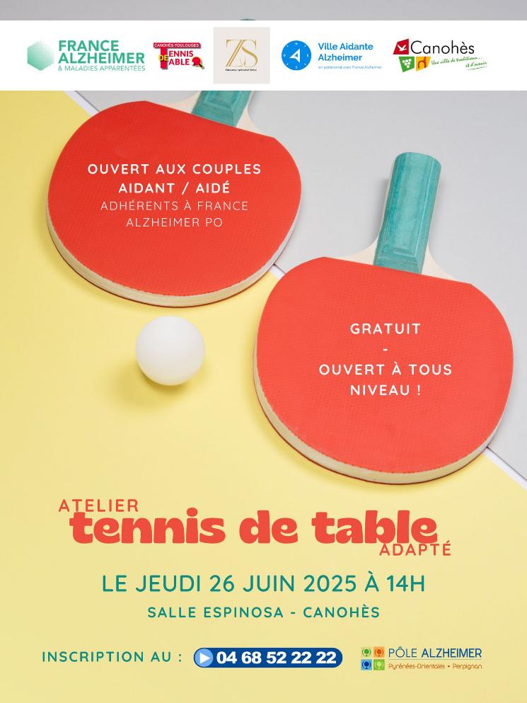 C’est pour cela que France Alzheimer PO en partenariat avec le club de tennis de table de Canohès / Toulouges, organise des séances adaptées une fois par mois pour les couples aidant / aidé !