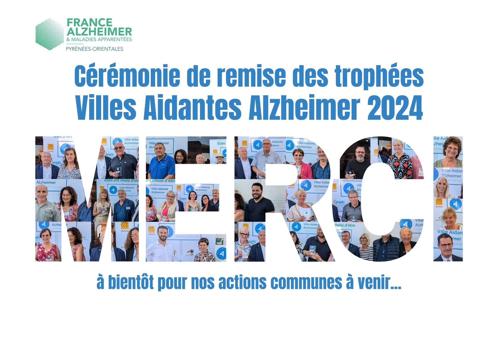 Ont répondu présents chaque Maire, élu(e) et responsable du CCAS des 24 Villes Aidantes Alzheimer, ainsi que Mme la Vice Présidente du Département Aidant Alzheimer, pour se voir remettre leur trophée.