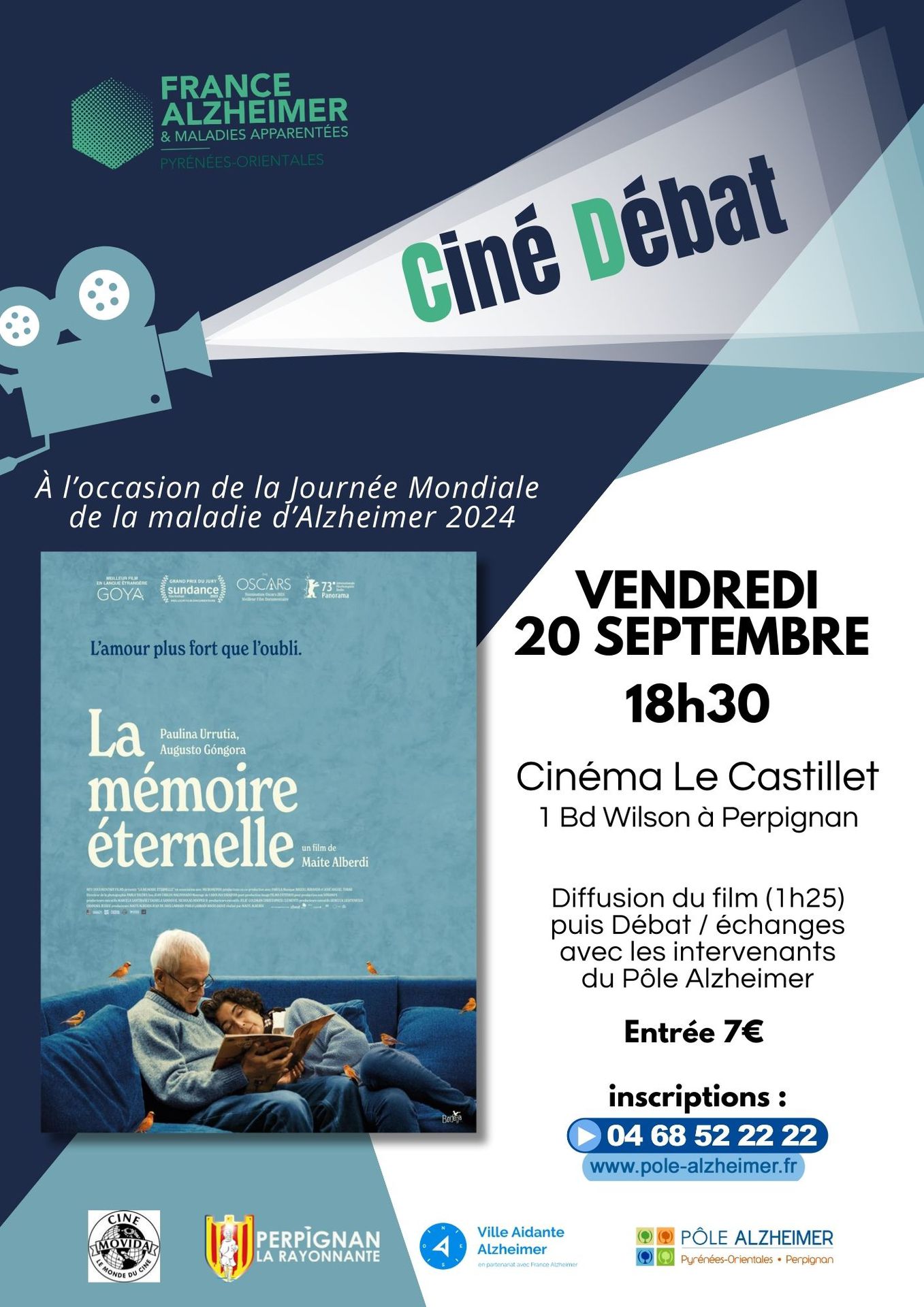 France Alzheimer PO s’associe au cinéma Le Castillet et à la maison de Production “Bodega Film” pour proposer le visionnage du film-documentaire “La mémoire éternelle” suivi d’échanges avec la neuropsychologue de la Plateforme d’accompagnement des aidants familiaux accompagnée du Président de l’association France Alzheimer PO.