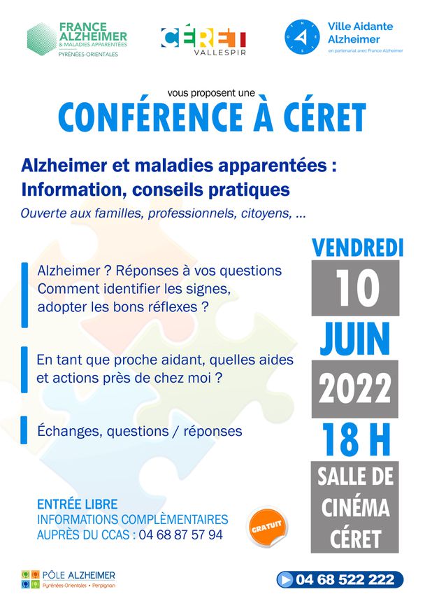 M. Guy Le Rochais Président de l’association France Alzheimer PO, vous présentera les différentes actions et services gratuits possibles sur le territoire de Céret, grâce au partenariat « Ville Aidante Alzheimer ».