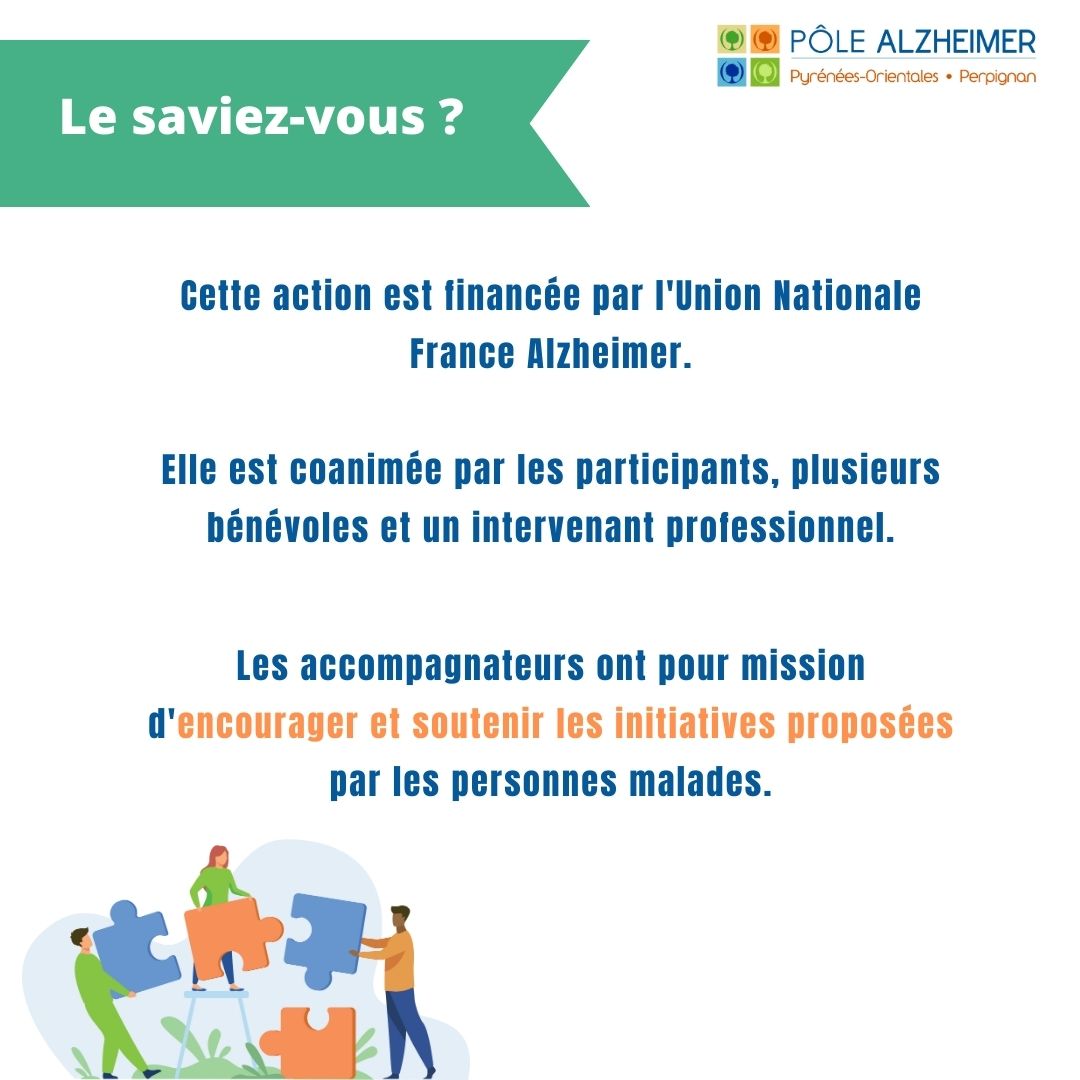 Cette action est sans participation financière des participants, elle est totalement financée par l'Union Nationale France Alzheimer et maladies apparentées.