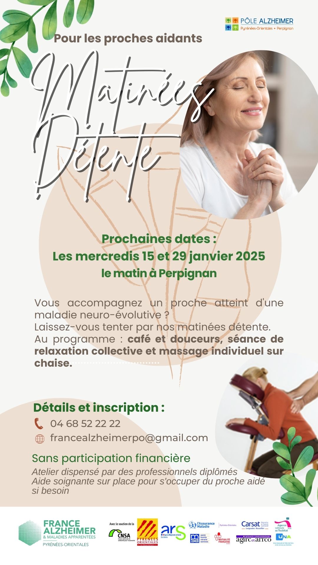 En partenariat avec la Conférence des financeurs, des Matinées Détente sont organisées 2 fois par mois à Perpignan !