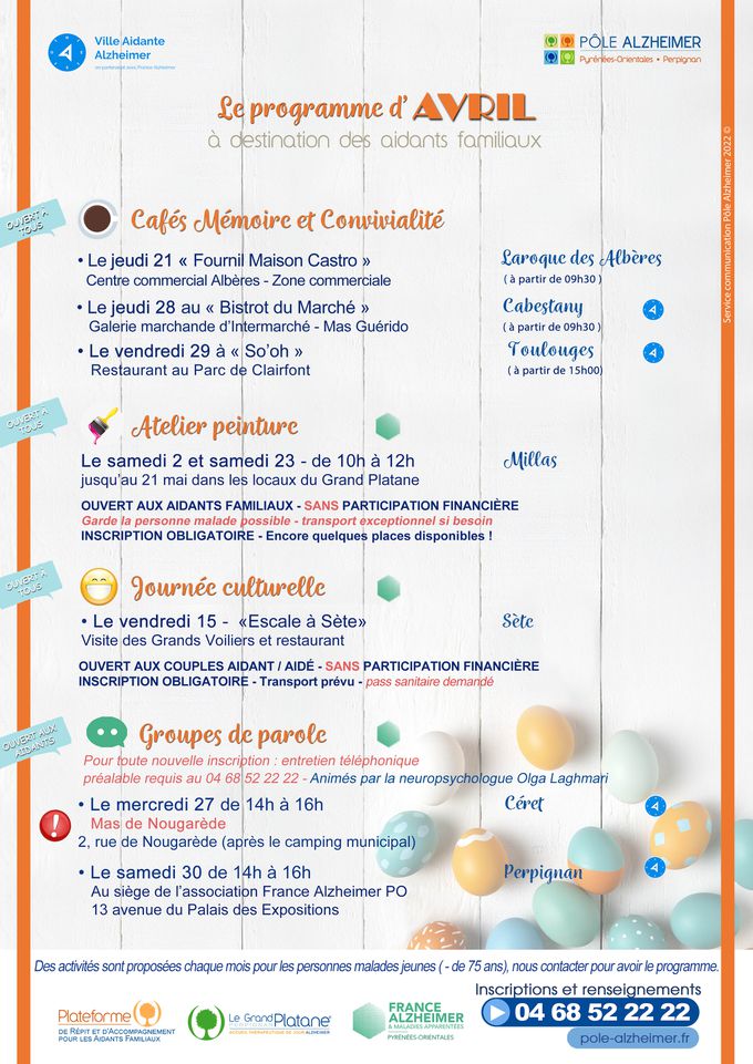 Programme des activités du Pôle Alzheimer du mois, n'hésitez pas à partager ces informations